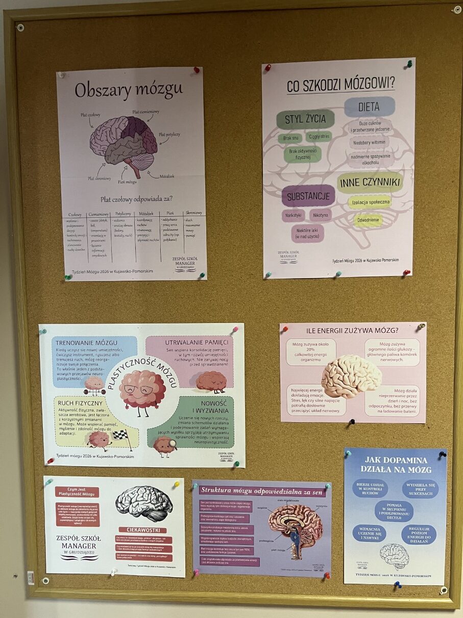 Nie zabrakło także miejsca na kreatywność – uczniowie przygotowali ciekawe i pomysłowe plakaty związane z tematyką mózgu. Wydarzenie było doskonałą okazją do nauki poprzez zabawę oraz odkrywania, jak fascynujący jest ludzki umysł.